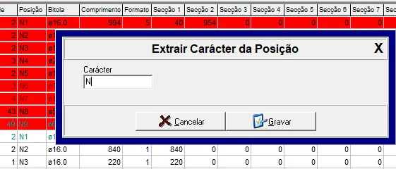 Na opção "extrair caracter Posição", o planilhador pode excluir de forma massiva a letra (N, T ou P) acompanhada do número da posição. Dessa maneira, ao exportar para o Belgo, somente os números serão enviados.