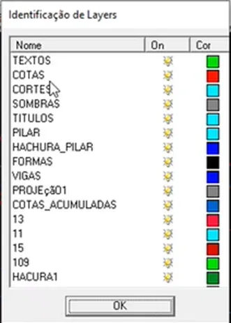 Os layers representam as cores de cada linha desenhada no projeto. Ao clicar em cada opção, a cor referente no projeto será desativada.