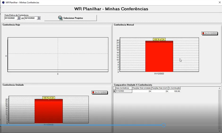 Permite visualizar os projetos conferidos, quando o projeto estiver na situação: Transferido. Essa tela é principalmente utilizada por supervisores da unidade ou do setor de planilhamento.